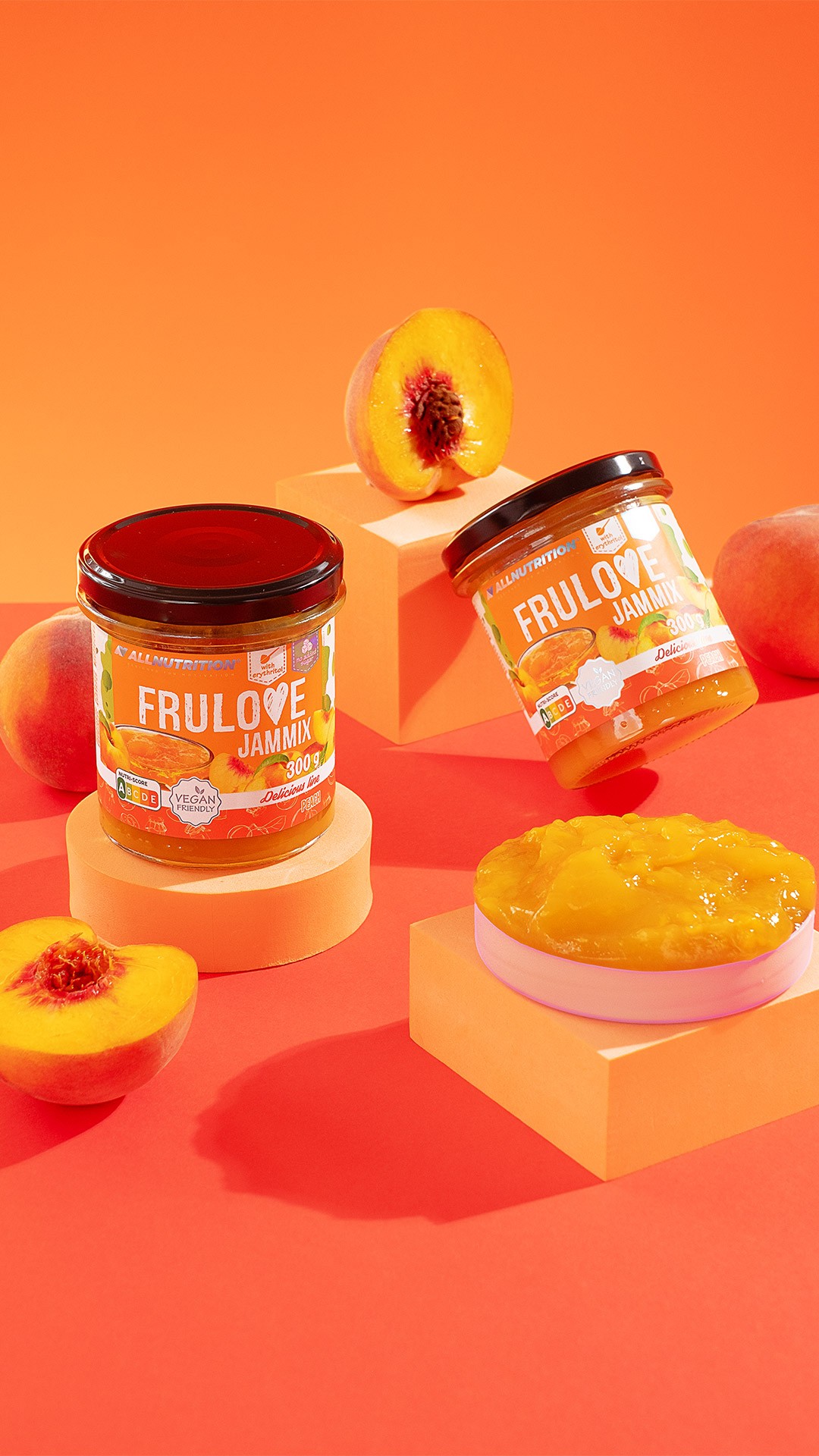 przecier brzoskwiniowy (32%), woda, brzoskwinia (14%), substancje słodzące: erytrytol, sukraloza, skrobia modyfikowana, substancja żelująca: pektyna, koncentraty (z czarnej marchwi, marchwi), regulator kwasowości: kwas cytrynowy, stabilizator: chlorek wapnia, aromaty, przeciwutleniacz: kwas askorbinowy, substancja konserwująca: sorbinian potasu